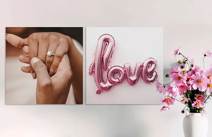 Les carreaux photo sont des photos individuelles imprimées sur de petits panneaux carrés que vous pouvez disposer sur votre mur pour créer un collage personnalisé.