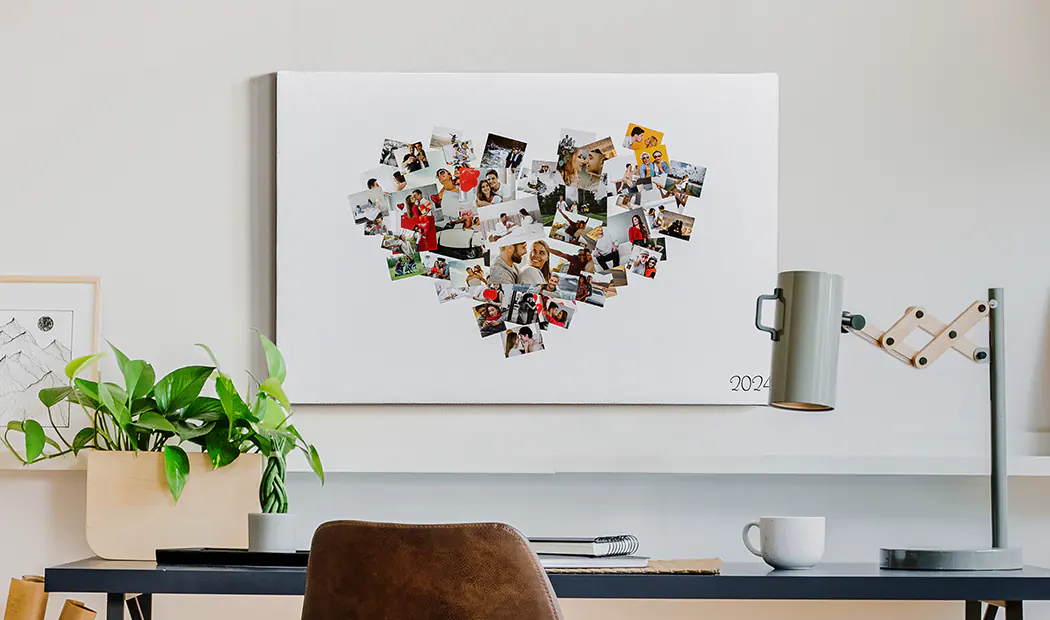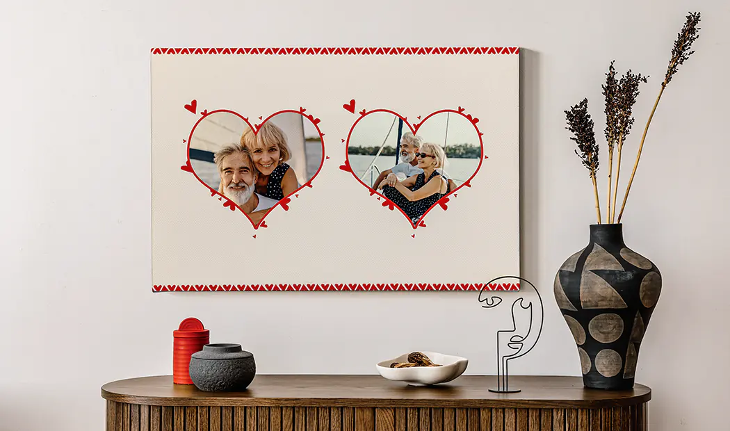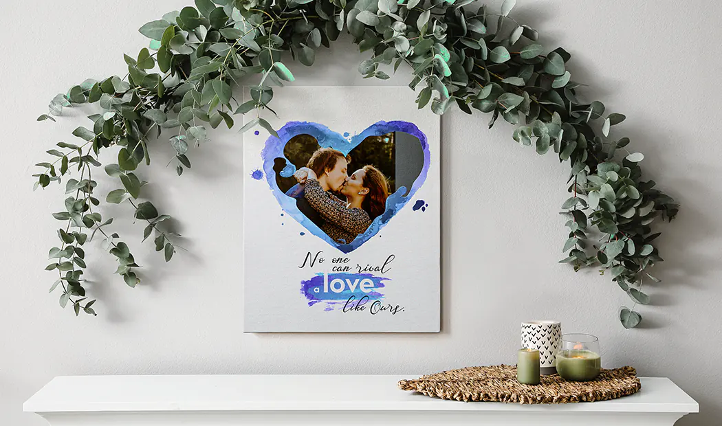 - Mariages et Anniversaires : Célébrez l'amour avec une toile en forme de cœur sur laquelle figure la photo de mariage du couple ou une citation romantique.