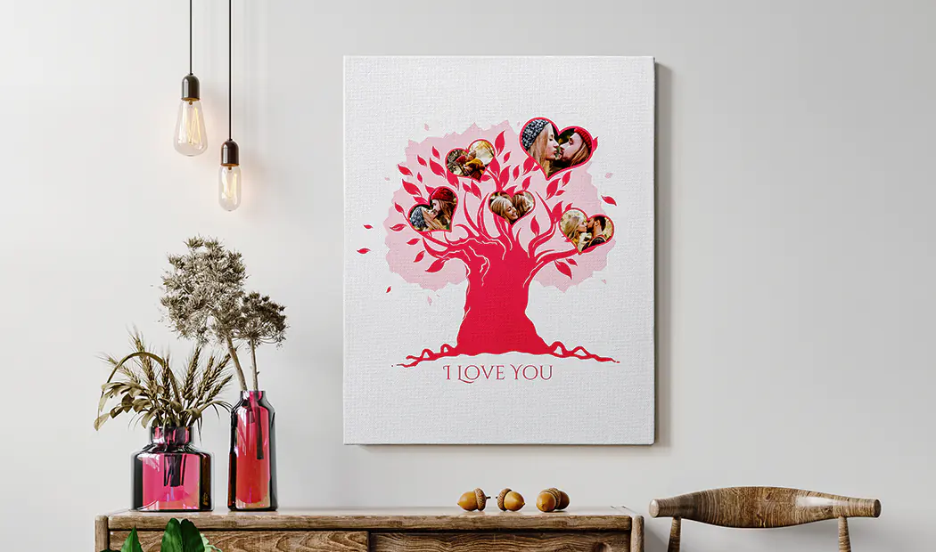 - Met en Valeur l'œuvre d'art : La toile en forme de cœur peut interagir avec l'œuvre d'art elle-même. Imaginez des cœurs sur un arbre ou votre photo dans le mot AMOUR.