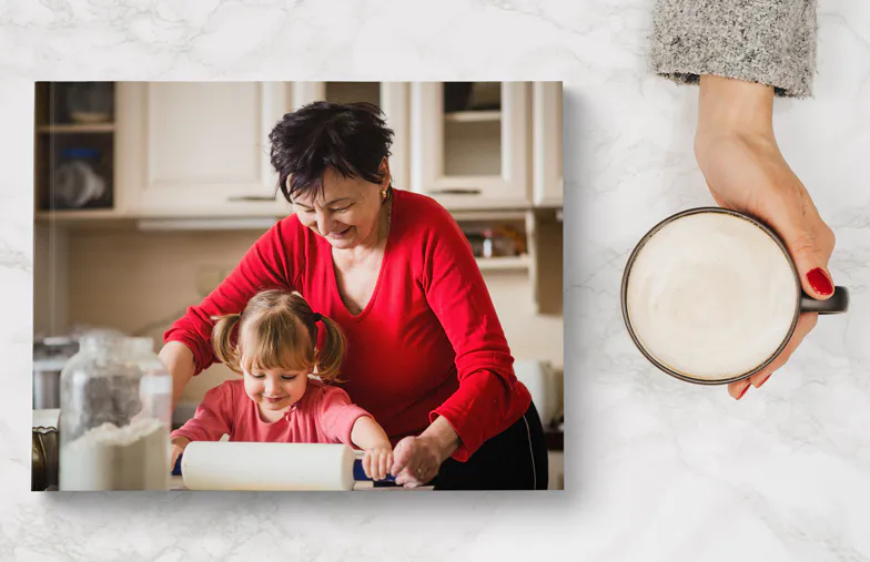 Notre livre le plus vendu est doté d'une couverture rigide robuste et d'un dos personnalisable. Protégez votre livre avec une finition brillante ou mate résistante aux taches.